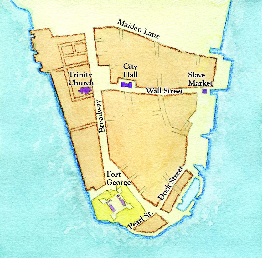 Maiden Lane once included an orchard, where enslaved Africans and two Native Americans met to plan the rebellion. Today the lane is part of downtown’s financial district.